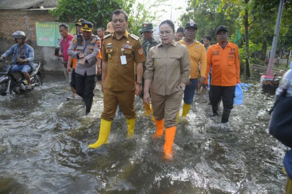 CARI SOLUSI: Wali Kota Semarang Agustina Wilujeng saat meninjau banjir bersama Gubernur Jateng di wilayah Genuk, Senin (27/10). Foto: Ist.